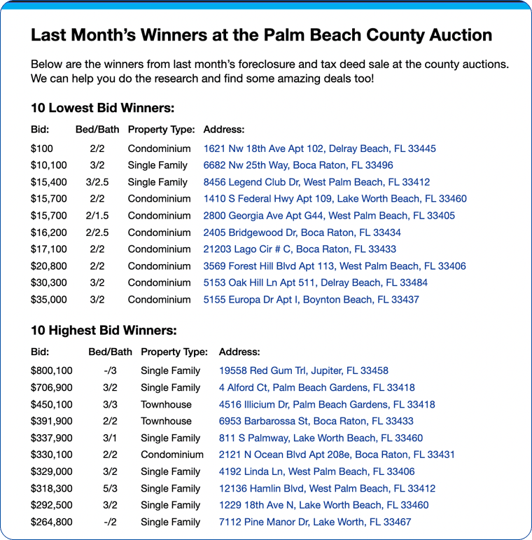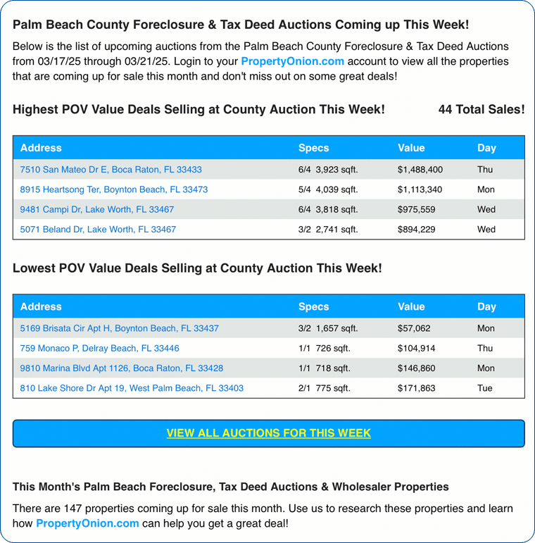 Get 100% Free Weekly Stats From Your County Foreclosure Auction!